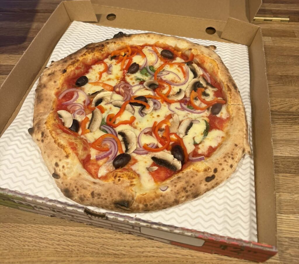 Italian T. sauce, fior di latte mozzarella, kalamata olives, red peppers, mushrooms and red onion.
