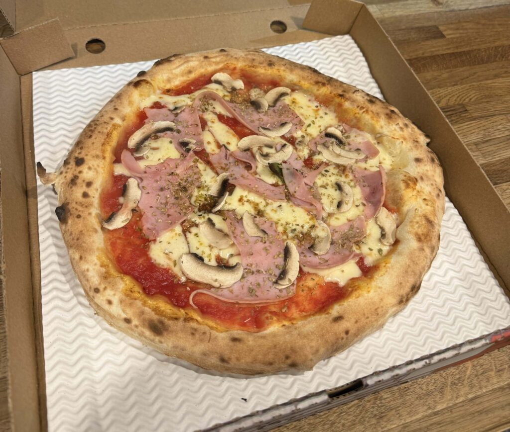 Italian T. sauce, fior di latte mozzarella, ham, mushrooms and oregano.