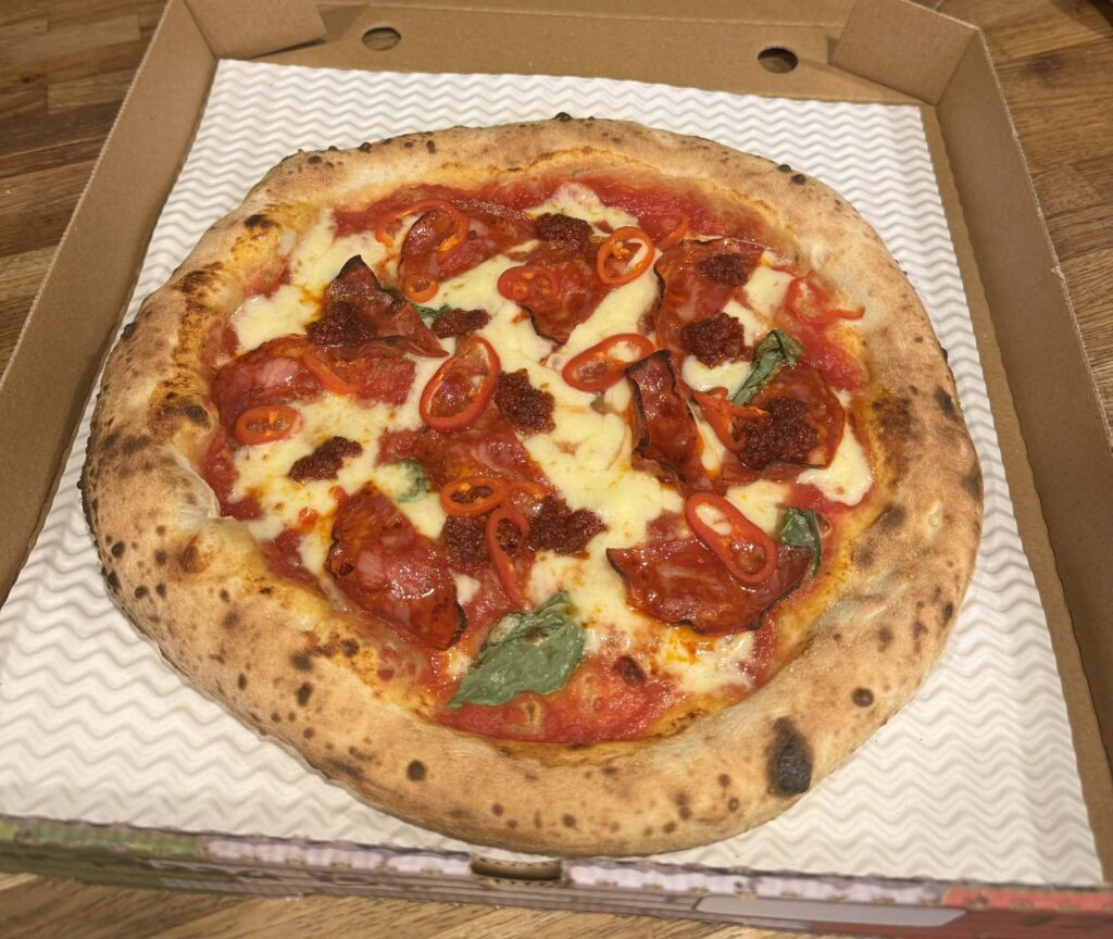 Italian T. sauce, fior di latte mozzarella, spicy nduja salami, smoked chorizo, red chillies, fresh basil.